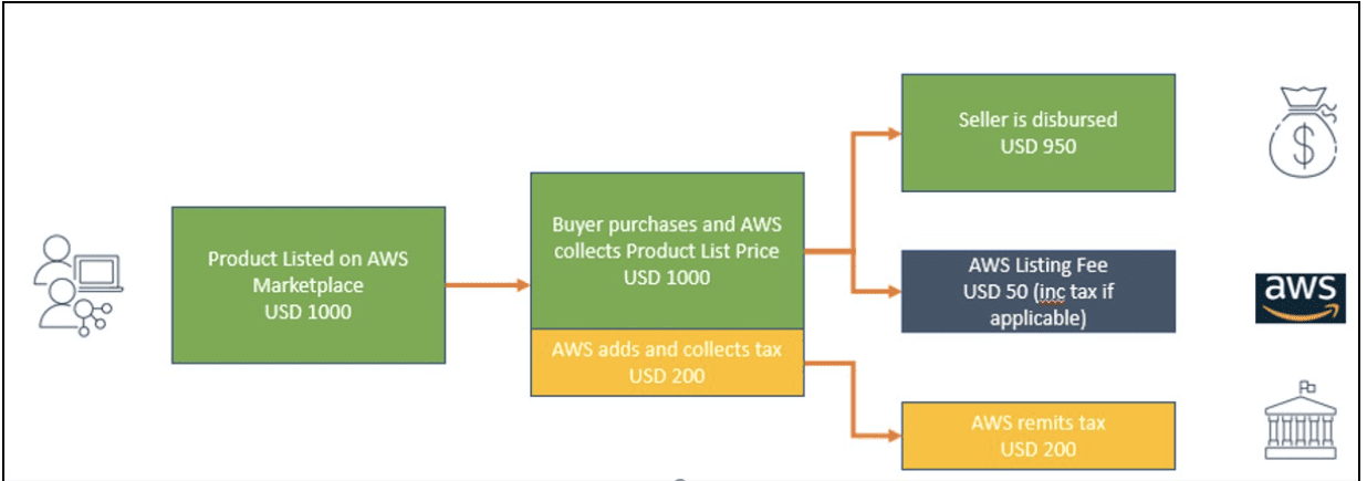 - Nếu AWS áp dụng thuế trên khoản phí này, AWS sẽ thay người bán nộp thuế cho cơ quan thuế tương ứng. Sellers sẽ thấy phần thuế này rõ ràng trong hóa đơn AWS;